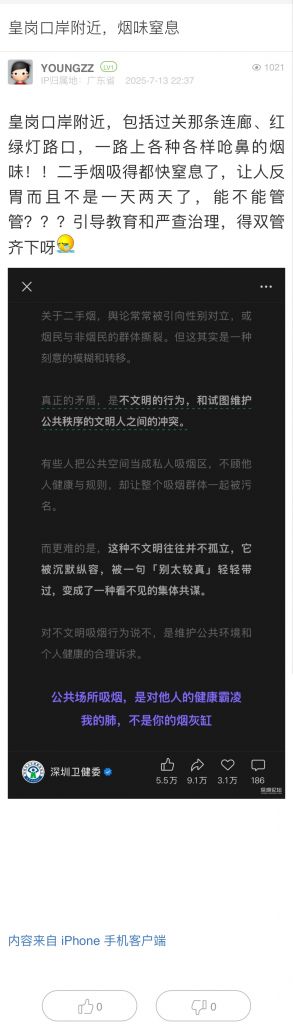 31. 帖文《皇岗口岸附近,烟味窒息》